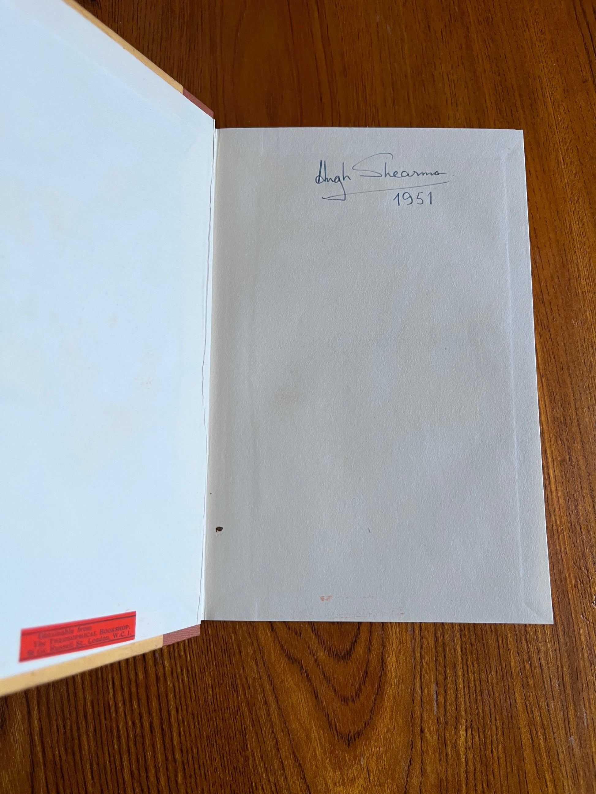 1950. Printed in attractive yellow and brown with embossed lettering. Near fine condition with some slight foxing to the edges. A small sticker pertaining to The Theosophical Bookshop in London is within, as well as an owners inscription from 1951.